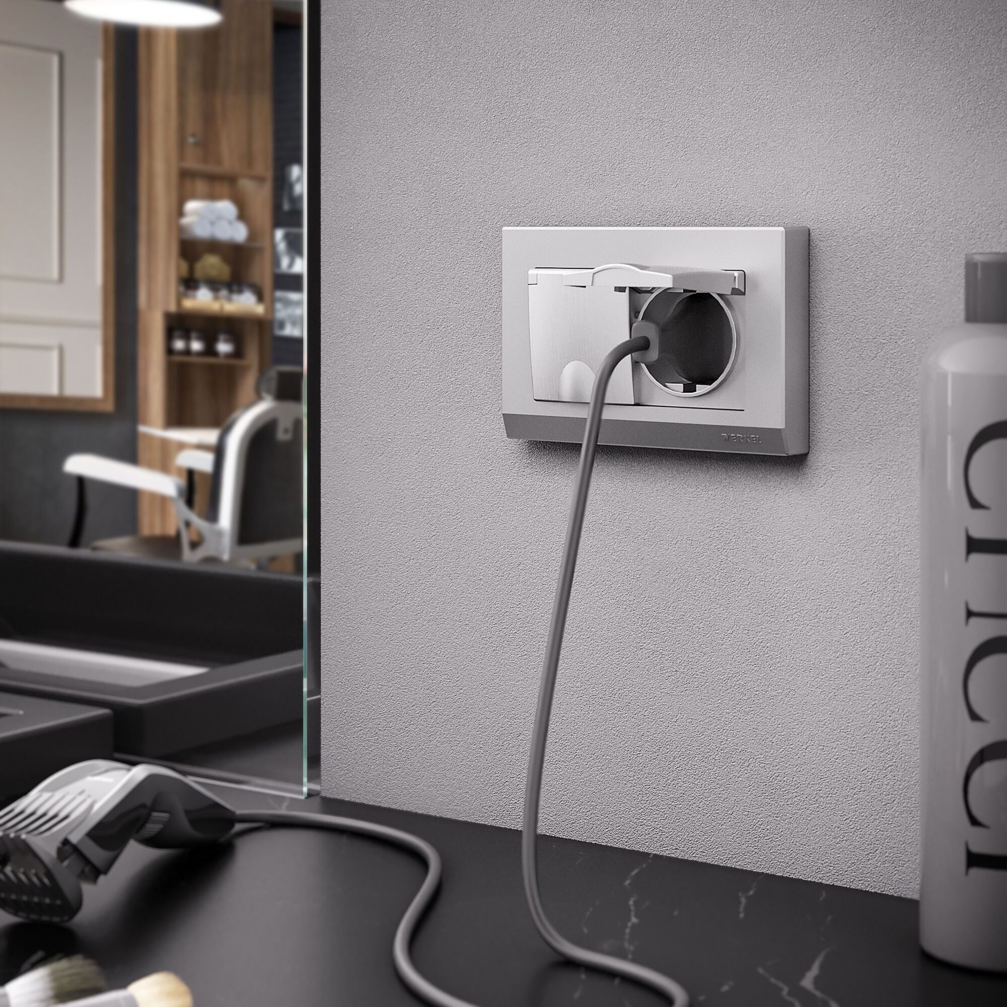 Встраиваемая розетка с заземлением совместима со всеми рамками из коллекций Werkel™, характеризуется удобством использования и обеспечивает надежный контакт.