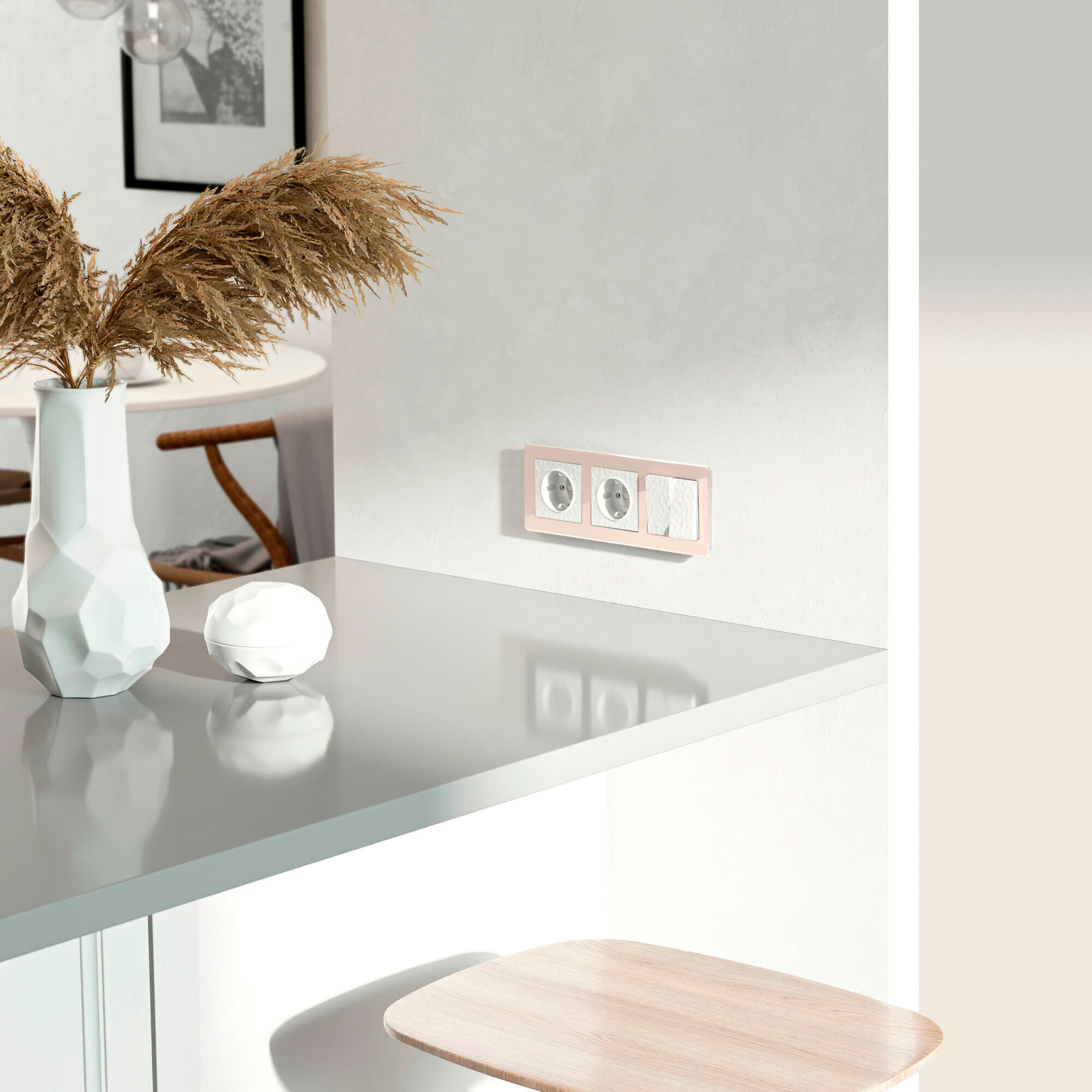 Встраиваемая розетка с заземлением совместима со всеми рамками из коллекций Werkel™, характеризуется удобством использования и обеспечивает надежный контакт.