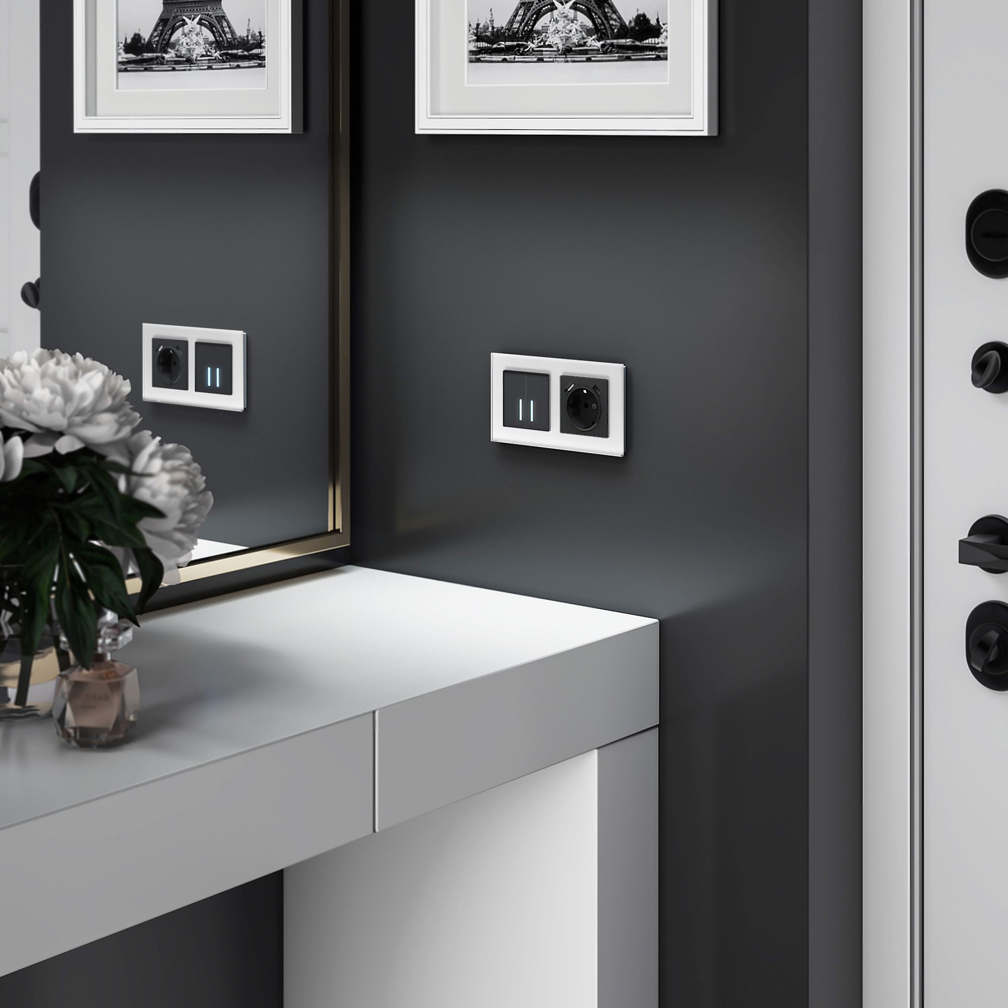 Встраиваемая розетка с заземлением совместима со всеми рамками из коллекций Werkel™, характеризуется удобством использования и обеспечивает надежный контакт.