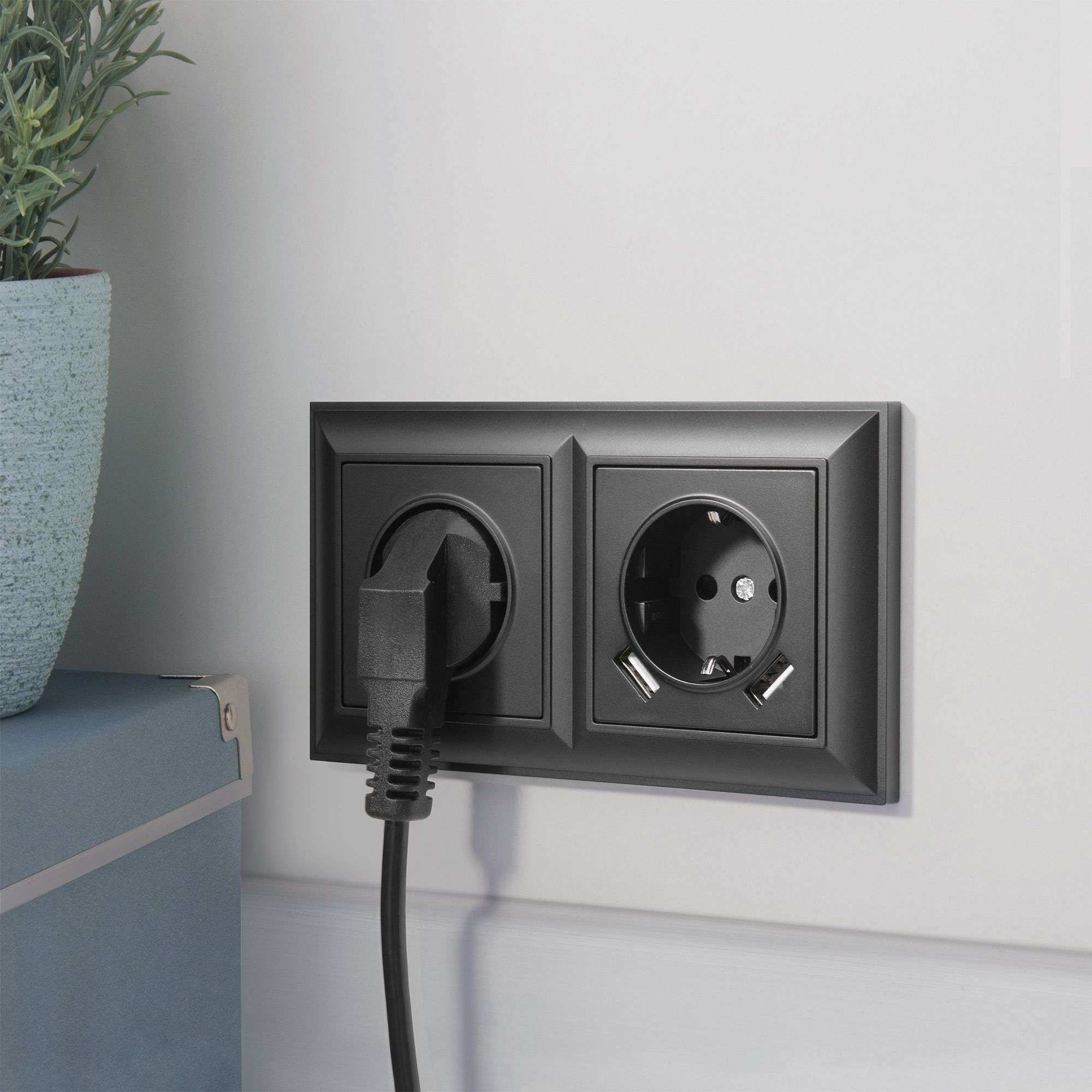 Розетка с заземлением USBх2 и шторками 220 В 16 A в цвете черный матовый является необходимым элементом в любом помещении и предназначена для подключения к электрической сети различных приборов. Такие электроустановочные изделия используются в квартирах, частных домах, коммерческих помещениях и устанавливаются в наиболее удобных местах для комфортного использования.