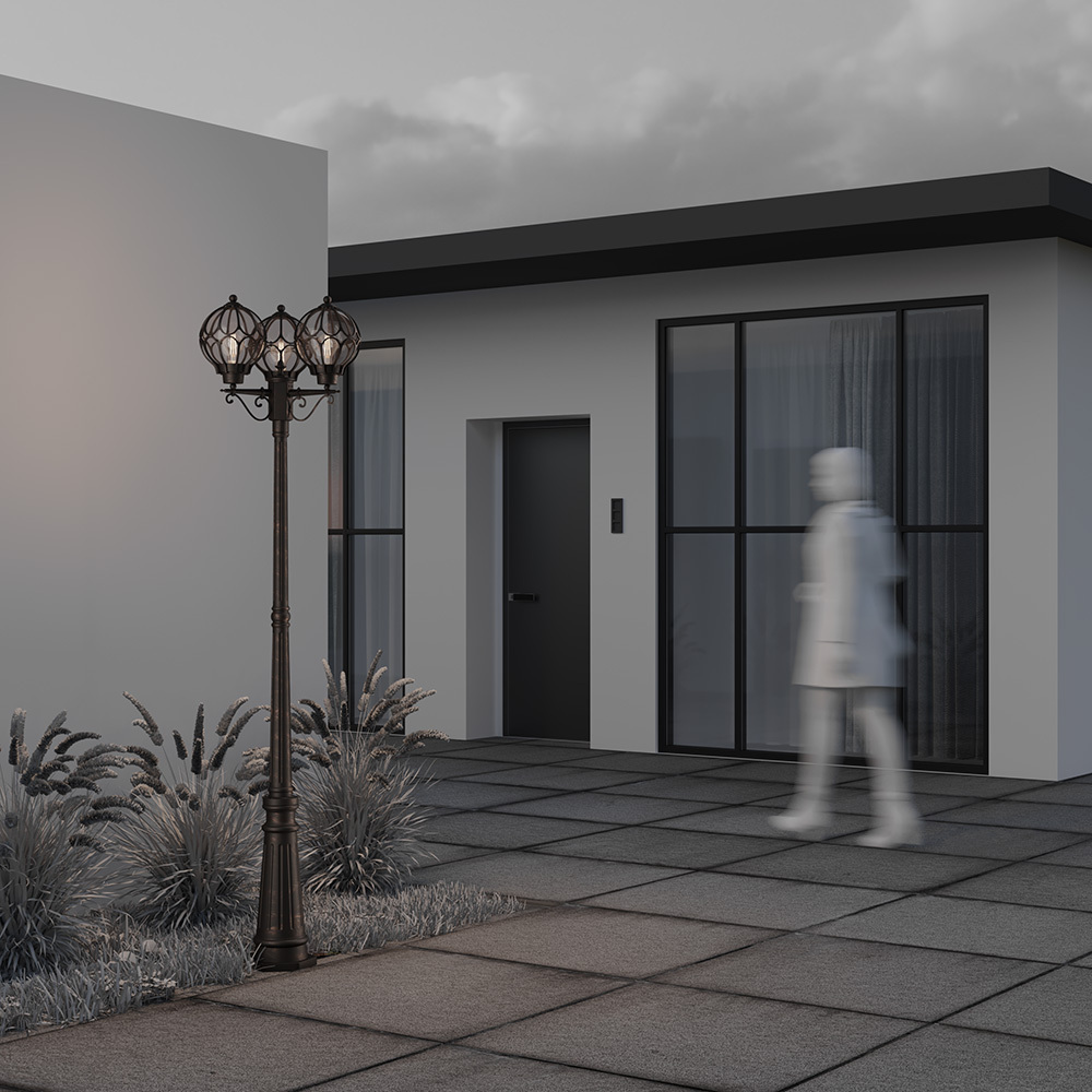 Серия классических садово-парковых светильников. Корпуса сделаны из устойчивого к перепадам температуры и коррозии алюминиевого сплава. В качестве источников света используются лампы c цоколем E27, свет от которых проходит через выдувные янтарные плафоны и становится похожим на пламя. Светильники серии подходят для подсветки дорожек, освещения подъездов и входных групп.