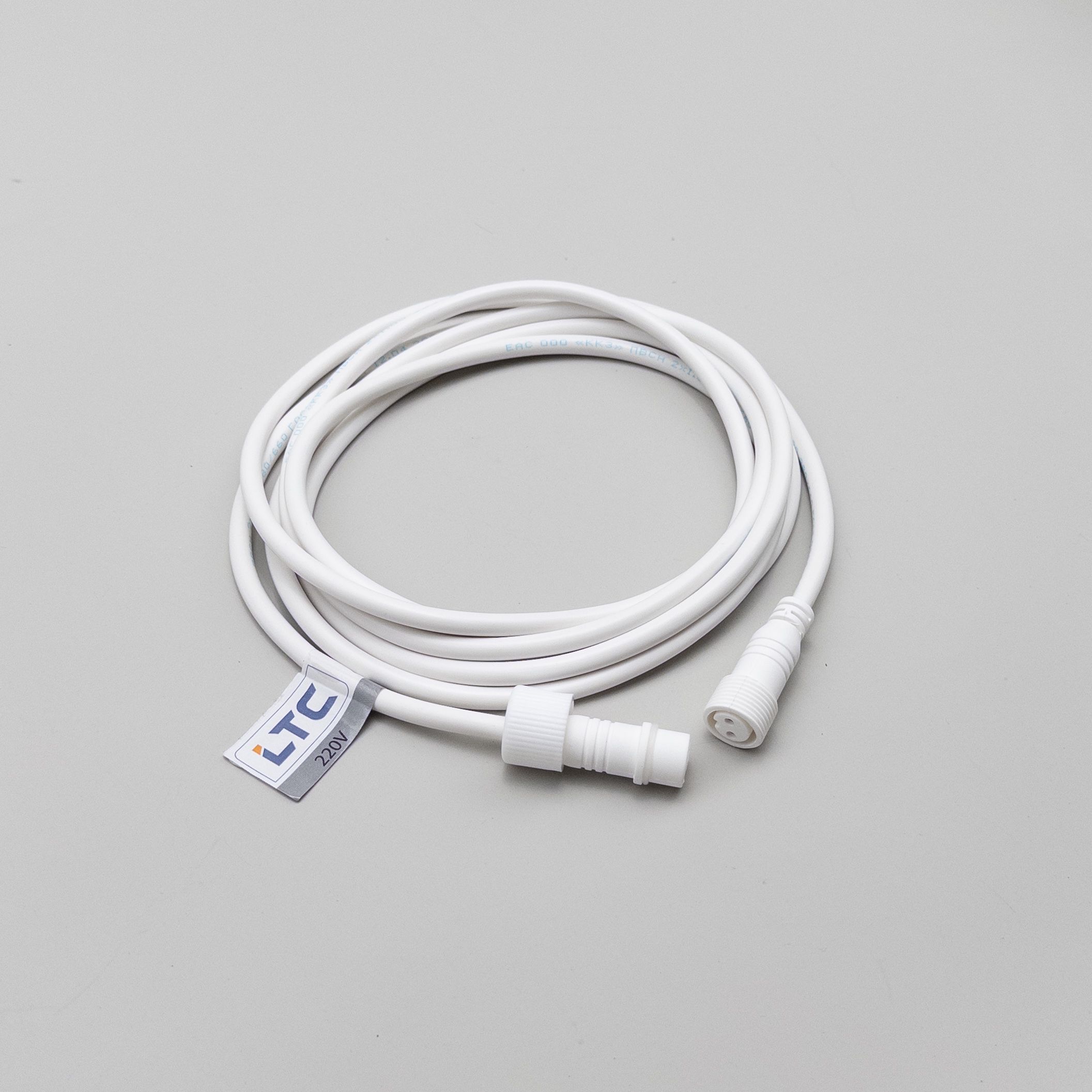 Соединитель 3м для Бахромы, Занавесов и Нитей 220В, Провод Белый Каучук, IP65 LTC LLS-8-3M в Череповце