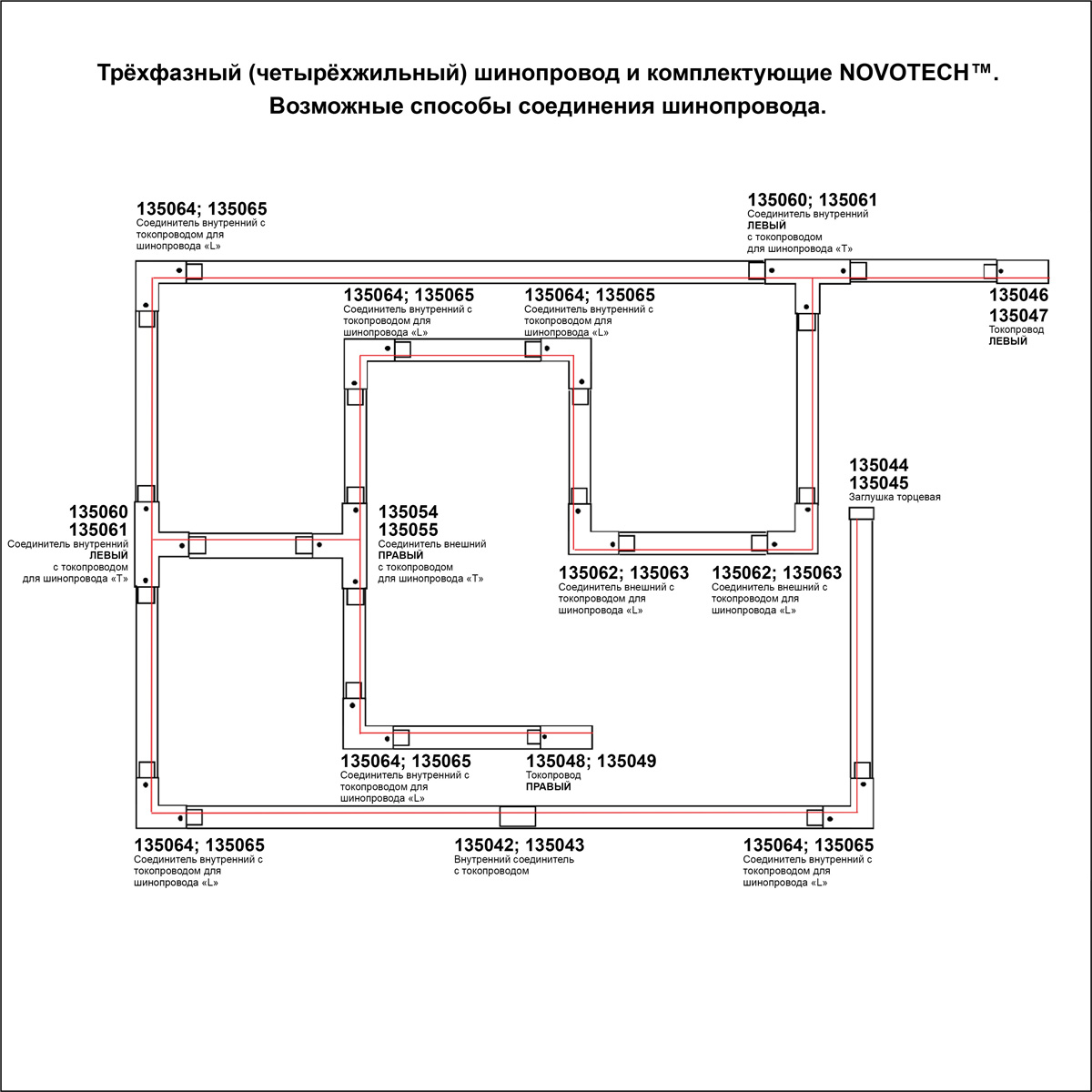 Соединитель T левый внутренний с токопроводом для трёхфазного шинопровода Novotech 135060 в Череповце