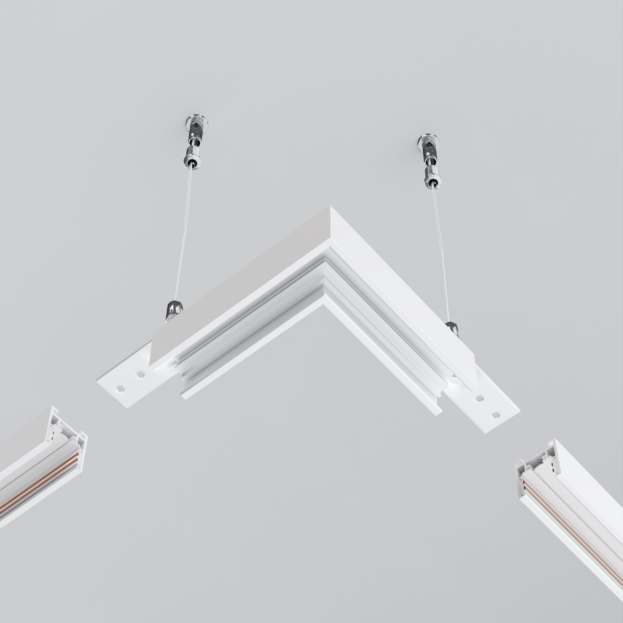 Комплектующие для низковольтной магнитной трековой системы Exility в черном и белом цветах. Разнообразие аксессуаров позволяет собрать свою уникальную конструкцию для накладного монтажа, подвесного, встраиваемого под гипсокартон и встраиваемого в натяжные потолки.