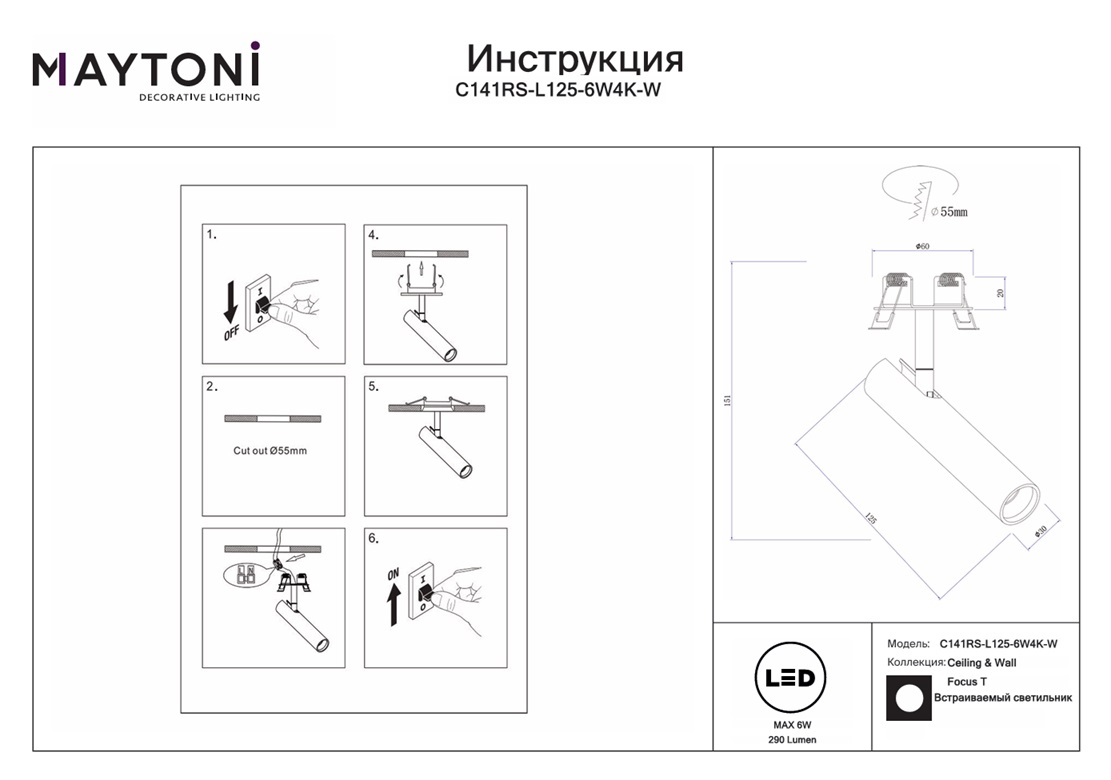 Спот поворотный Maytoni Focus T C141CL-L125-6W4K-W — это надёжный и долговечный осветительный прибор, который прослужит вам долгие годы, не теряя своей яркости и качества света. Данную модель C141CL-L125-6W4K-W спешите купить в интернет-магазине 220svet.