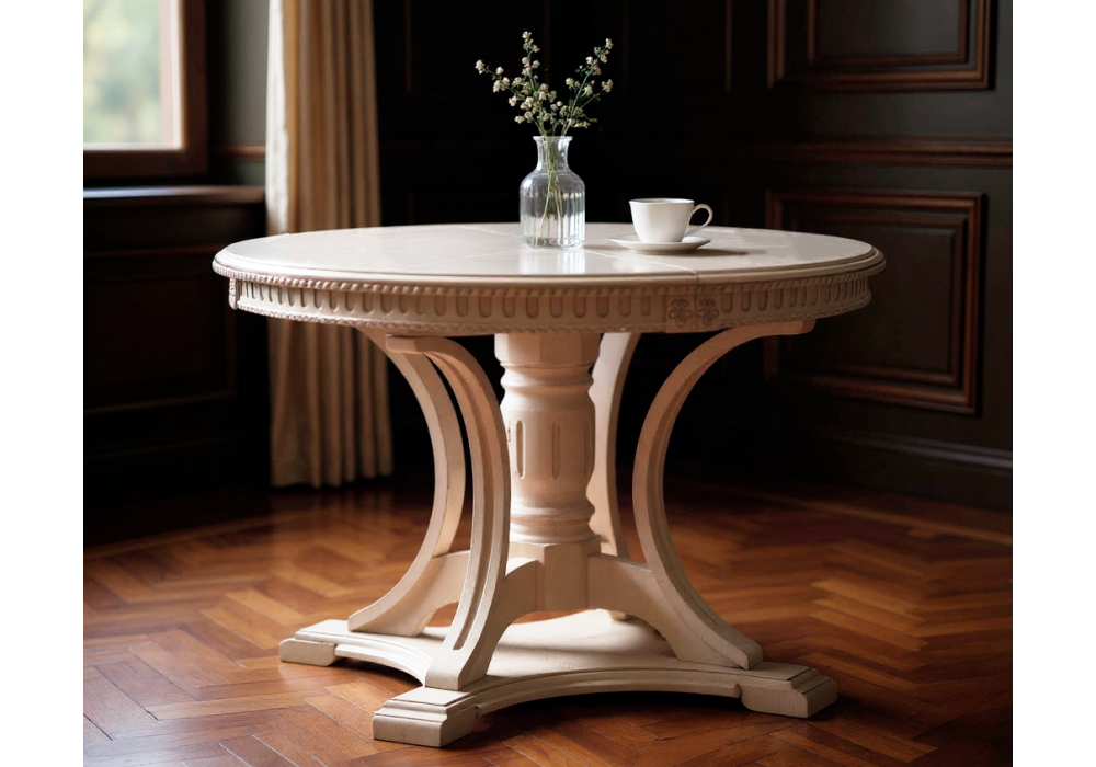 Стол деревянный раскладной Woodville Нозеан круглый белый / серебро 615230 в Череповце