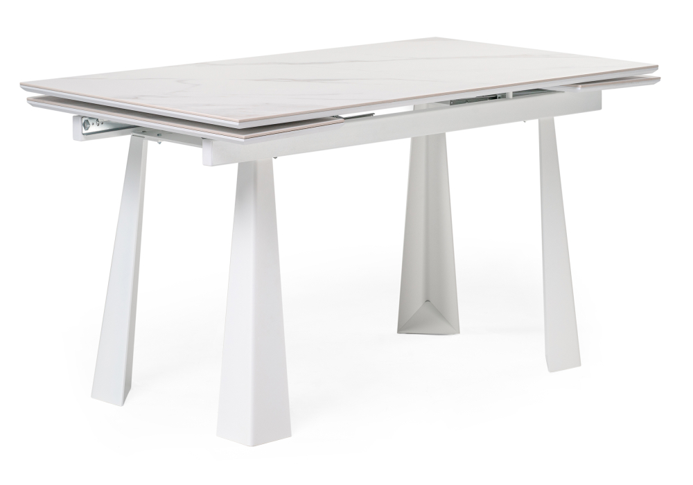 Толщина столешницы: 2,2 см. Материал каркаса - Металл; Материал ножек - Металл; Материал столешницы - Керамика / МДФ; Цвет каркаса - Белый; Цвет ножек - Белый; Цвет столешницы - Белый мрамор; Ширина - 80; Высота - 76; Длина стола в разложенном виде - 200; Длина - 140;