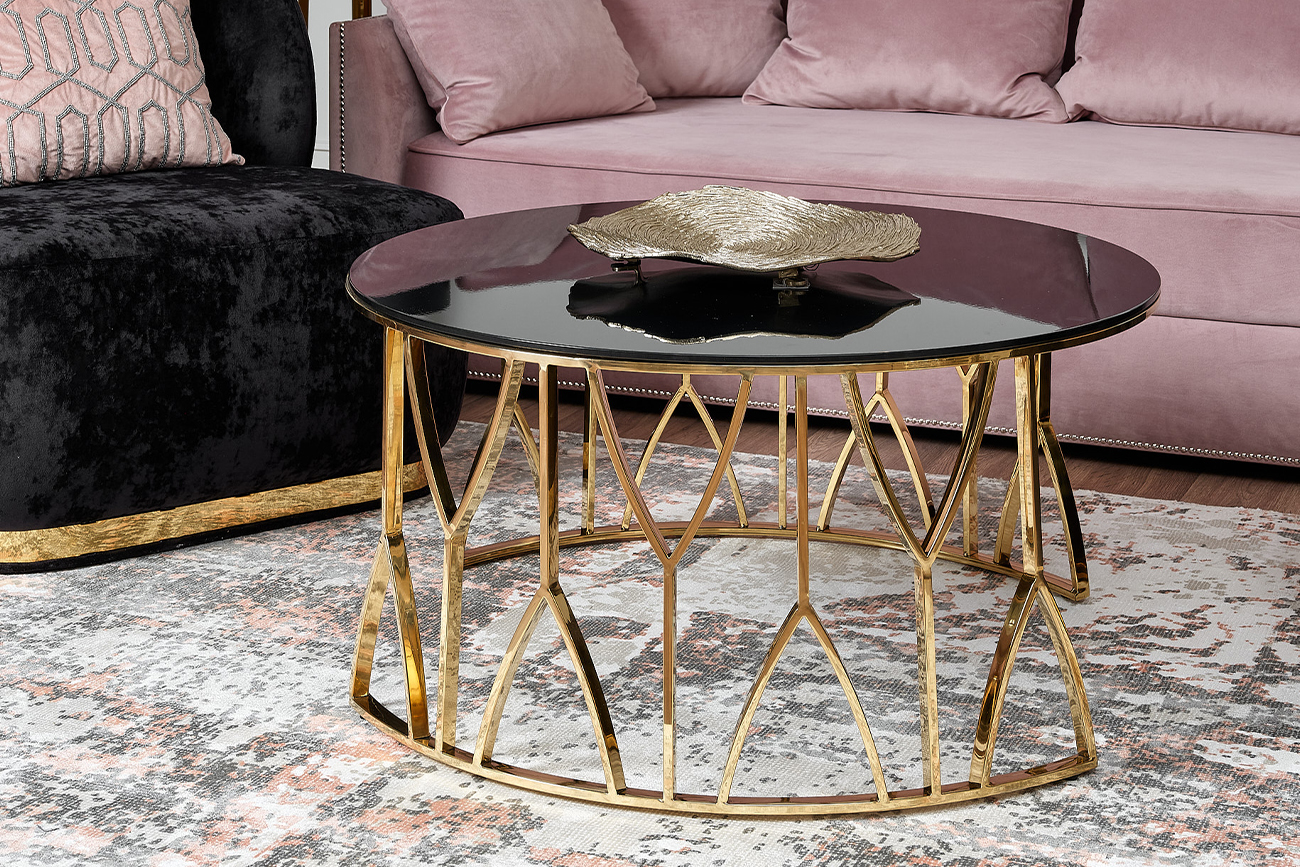 «Золотой» журнальный стол – воплощение роскоши и креативного дизайна. Вместо традиционной опоры в виде ножек – основание необычной формы из полированной нержавеющей стали золотого цвета. В качестве столешницы – закаленное зеркальное стекло эффектного черного цвета. Этот дизайнерский журнальный стол для гостиной без сомнения станет украшением интерьера. Его можно использовать в качестве подставки под интерьерный декор, для сервировки чаепития и просто в качестве элегантного акцента гостиной. На сайте Garda Decor можно купить эксклюзивный журнальный стол с черным стеклом, а также другую мебель премиального качества для создания стильных интерьеров.