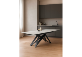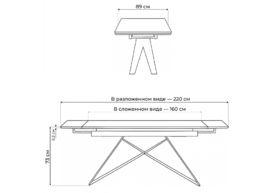 Керамический стол Woodville Вилсон 160(220)х89х75 белый мрамор snow white / черный 612880