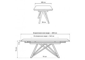 Керамический стол 140(200)х80 раскладной Woodville Старлайт snow alpin white / черный 622891