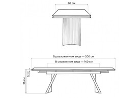 Керамический стол раскладной Woodville Вейв 140(200)х80 серый мрамор larka grey / черный 626003