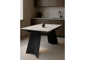 Керамический стол раздвижной Woodville Вейв 160(220)х89х75 белый мрамор snow white / черный 612186