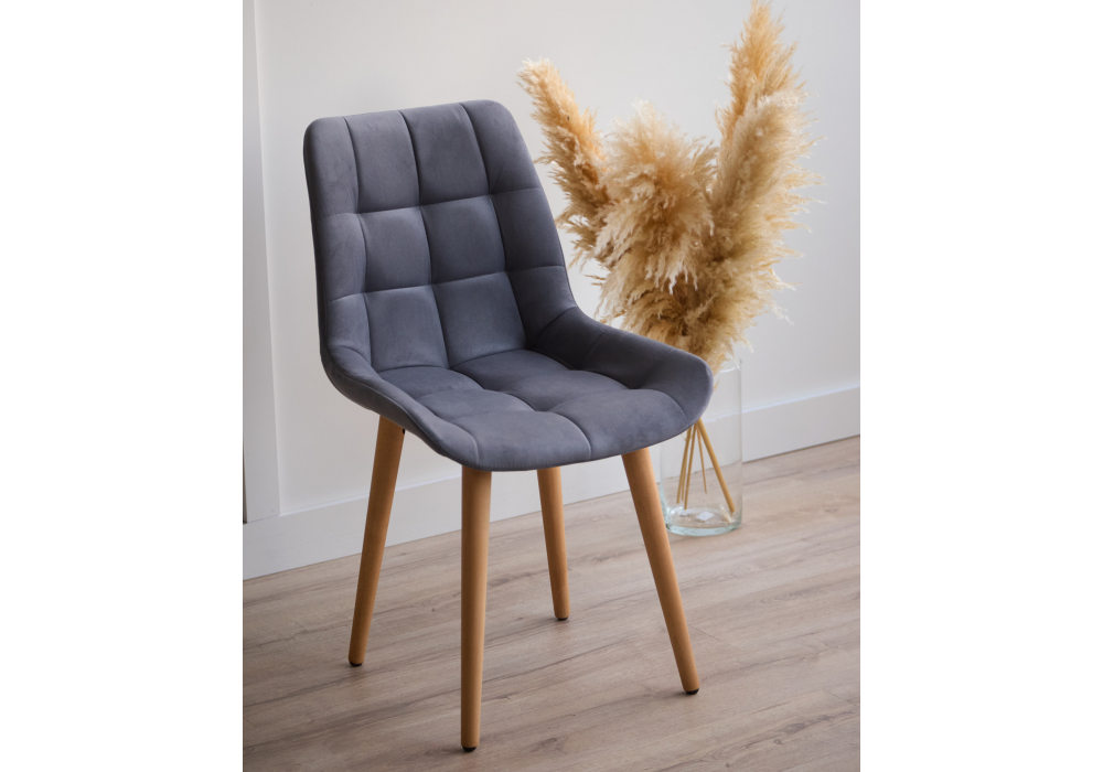 Материал каркаса - дерево; Материал сиденья - велюр; Материал обивки - велюр; Цвет ножек - натуральный; Ширина - 50; Глубина - 60; Высота - 80; Ширина сиденья - 44; Глубина сиденья - 41; Высота сиденья - 48;