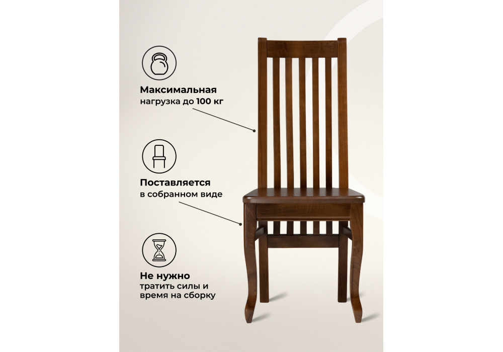 Материал каркаса - массив бука; Материал сиденья - массив бука; Материал обивки - массив бука; Ширина - 44; Глубина - 56; Высота - 100; Ширина сиденья - 41; Глубина сиденья - 44; Высота сиденья - 45;
