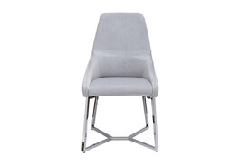 Оригинальный стул, выполненный в современном европейском стиле, сочетает в себе красоту и удобство. Обивка из высококачественного серого велюра и специально сконструированное сиденье, поддерживающее спину, обеспечивают комфорт, а прочная стальная опора цвета матового золота, заменяющая традиционные ножки, гарантирует устойчивость. Наполнитель пенополиуретан. Размер сиденья: Г43*Ш44*В45см.