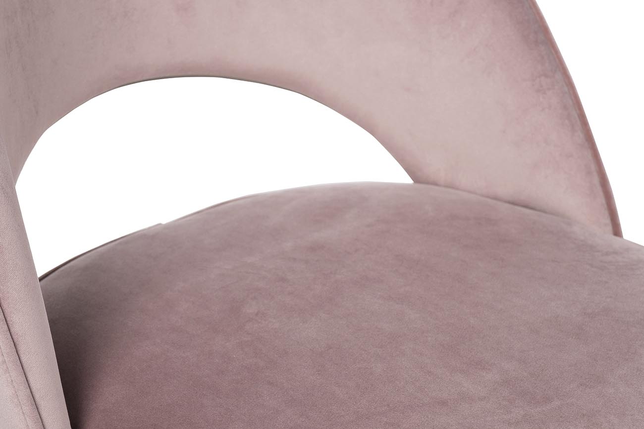 Один из важных элементов, к выбору которого необходимо подойти серьезно – это стул для столовой. Такая мебельная конструкция сама по себе должна быть удобной, практичной и стильной. Если в интерьере столовой преобладает нежные и светлые оттенки, можно рассмотреть вариант покупки пепельно-розового стула с черными ножками. При этом он выглядит благородно. Такой велюровый стул с закругленной спинкой отлично подойдет всем любителям роскоши. Дизайнерский обеденный стул заслуживает быть в столовой ценителя стиля и искусного исполнения мебели. Сиденье: ширина 47, глубина 48, высота 47см