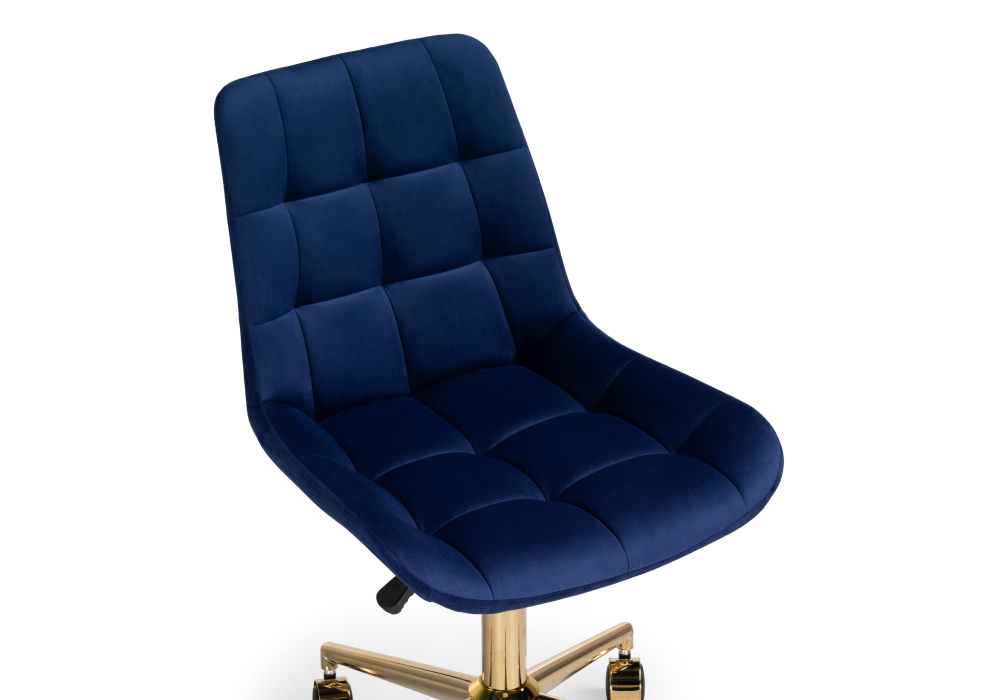 Материал каркаса - Металл; Материал сиденья - Велюр; Материал ножек - Металл; Материал обивки - Велюр; Цвет каркаса - Золотой; Цвет сиденья - Синий; Цвет ножек - Золотой; Цвет обивки - Синий; Ширина - 49; Глубина - 60; Высота - 84; Ширина сиденья - 46; Глубина сиденья - 41; Высота сиденья - 46; Высота сиденья максимальная - 52; Высота максимальная - 92;