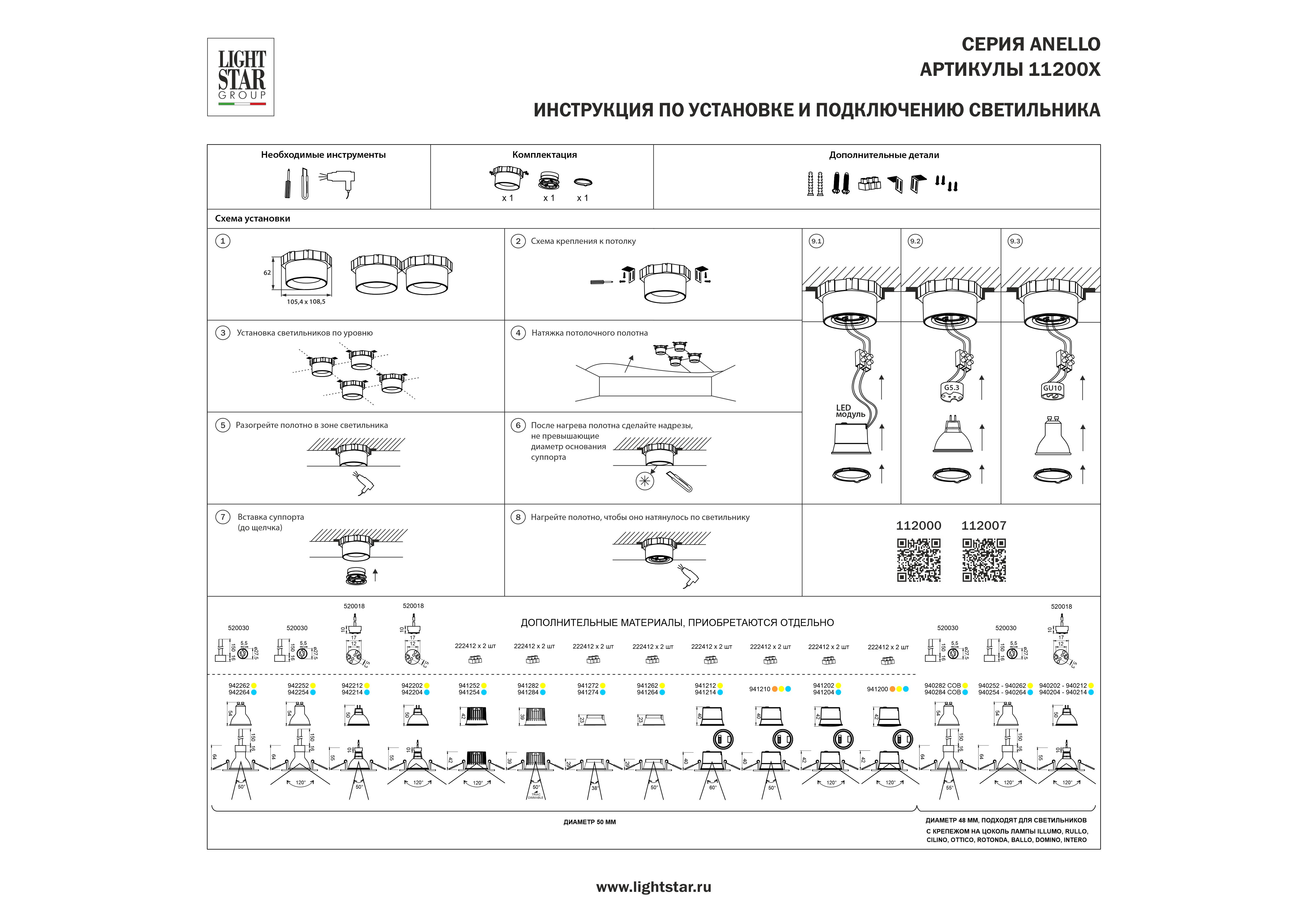 Светильник в натяжной потолок Anello Lightstar 112007 в Череповце