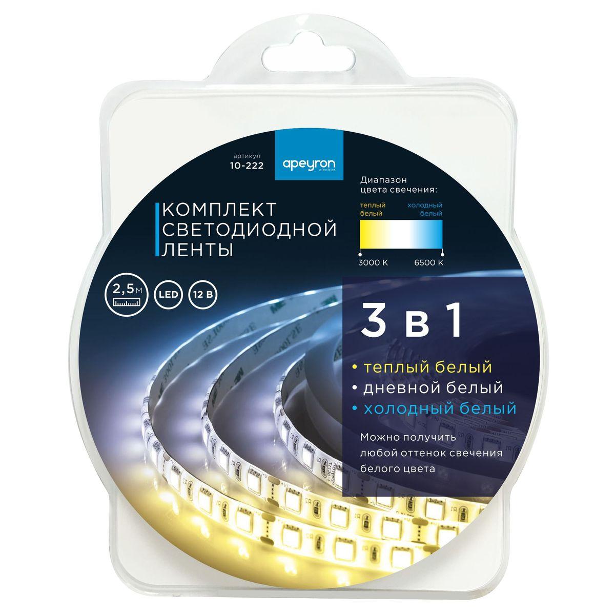Светодиодная лента Apeyron 14, 4W/m 60LED/m 5050SMD теплый белый/холодный белый 2, 5M 10-222 в Череповце