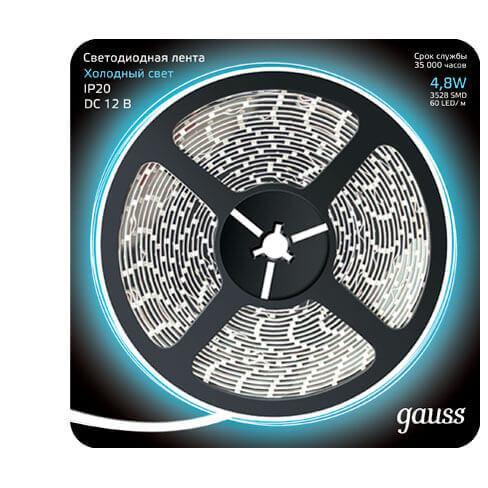 Светодиодная лента Gauss 4, 8W/m 60LED/m 2835SMD холодный белый 5M 312000305 в Череповце