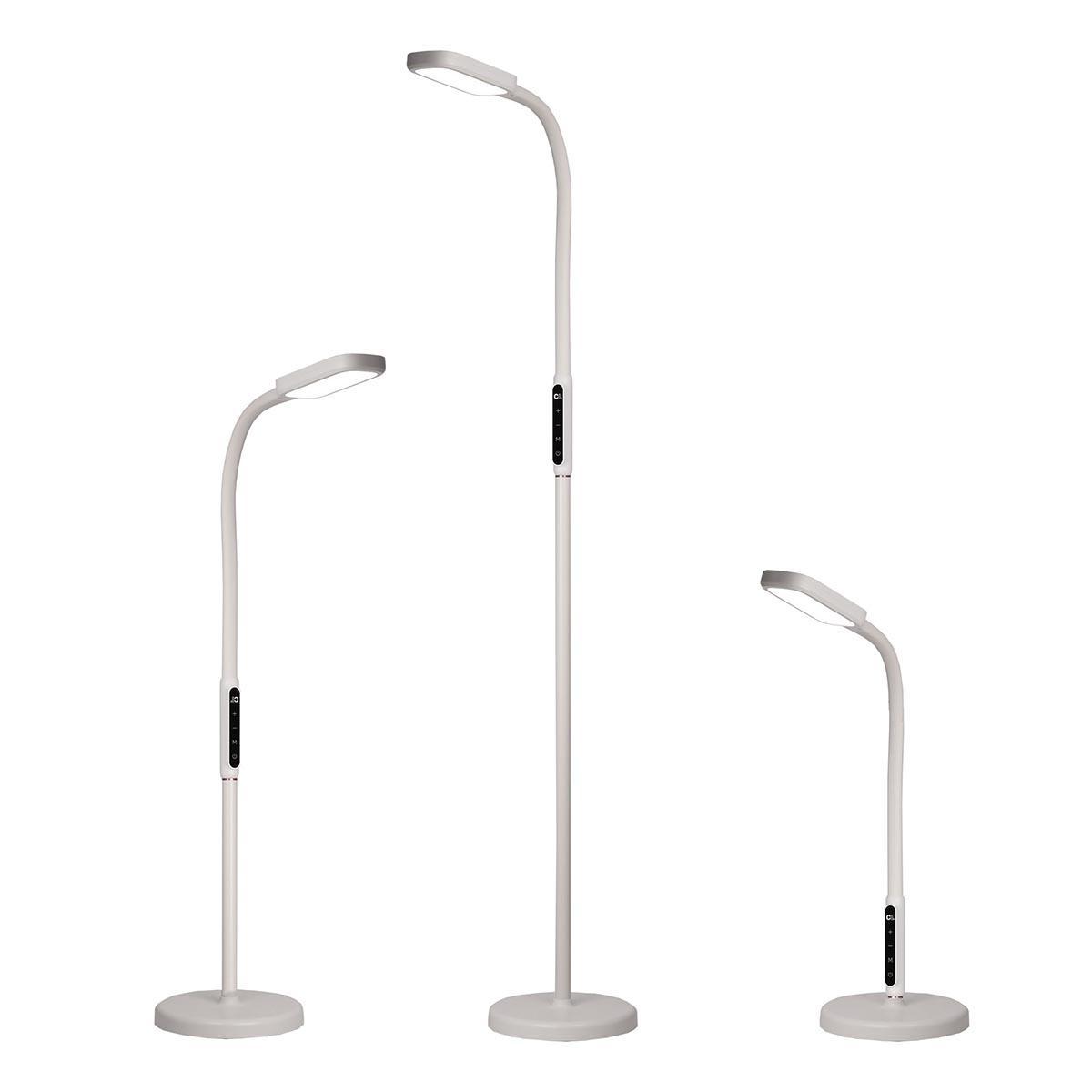 Светодиодный напольный торшер Citilux Марк CL804020 выполнен в современном стиле, цвет белый. Круглое основание светильника изготовлено из ударопрочного полимера. Стойка металлическая, состоит из трёх частей, которые соединяются между собой с помощью резьбового соединения. Две нижние части по 40 см. Верхняя часть с блоком управления, гибкой «шеей» и светодиодным модулем-плафоном. В текущей версии изготовления, торшер можно собрать в двух вариантах, «стандартный торшер» и «маленький торшер». Мощность 13Вт. Управление сенсорное, доступно: ступенчатая регулировка яркости (5 режимов), цветовой температуры – 2800 - 4000 – 5500 Кельвин (тёплый, нейтральный, холодный свет). Есть таймер выключения, с задержкой 60 минут. Торшер Citilux Марк CL804020 прекрасный вариант для освещения рабочего стола офисных работников, студентов и школьников. Подойдёт для освещения зоны отдыха, возле дивана или кресла.