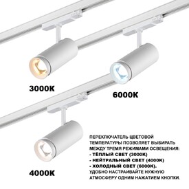 Трековый трехфазный светильник с переключателем цветовой темперетуры Novotech NAIL 359585 белый
