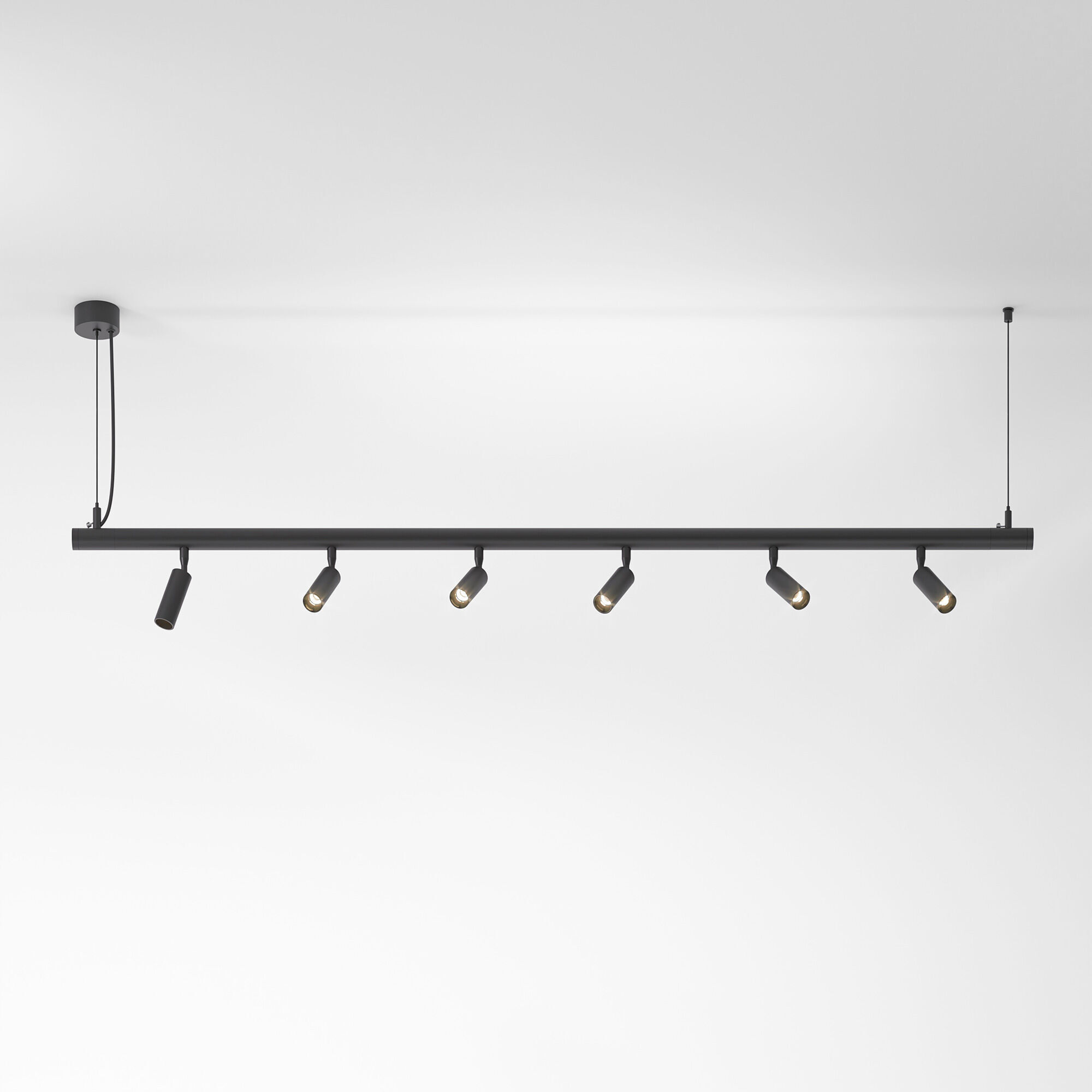 Для установки системы требуются трековые светильники и комплектующие (трансформатор, гибкие стойки, набор для подвеса).