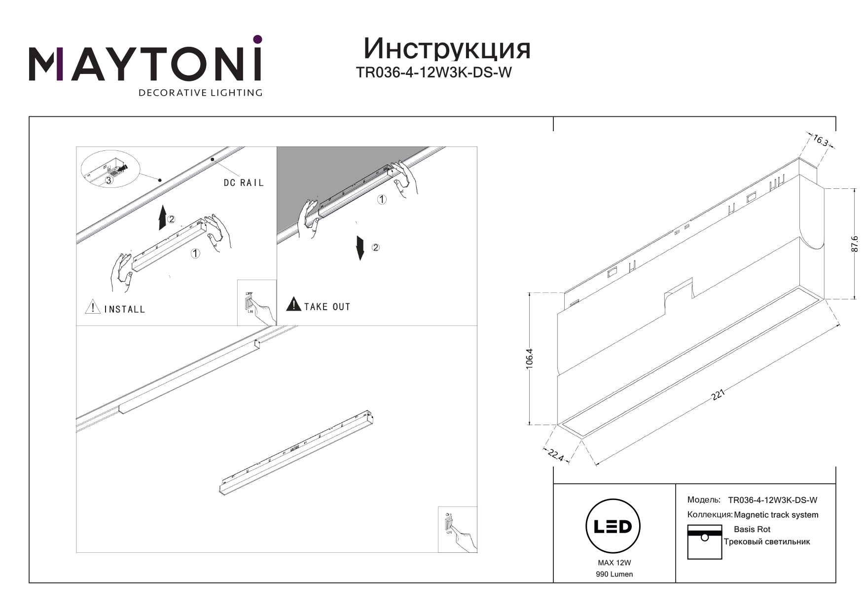 - Общая мощность: 12 W