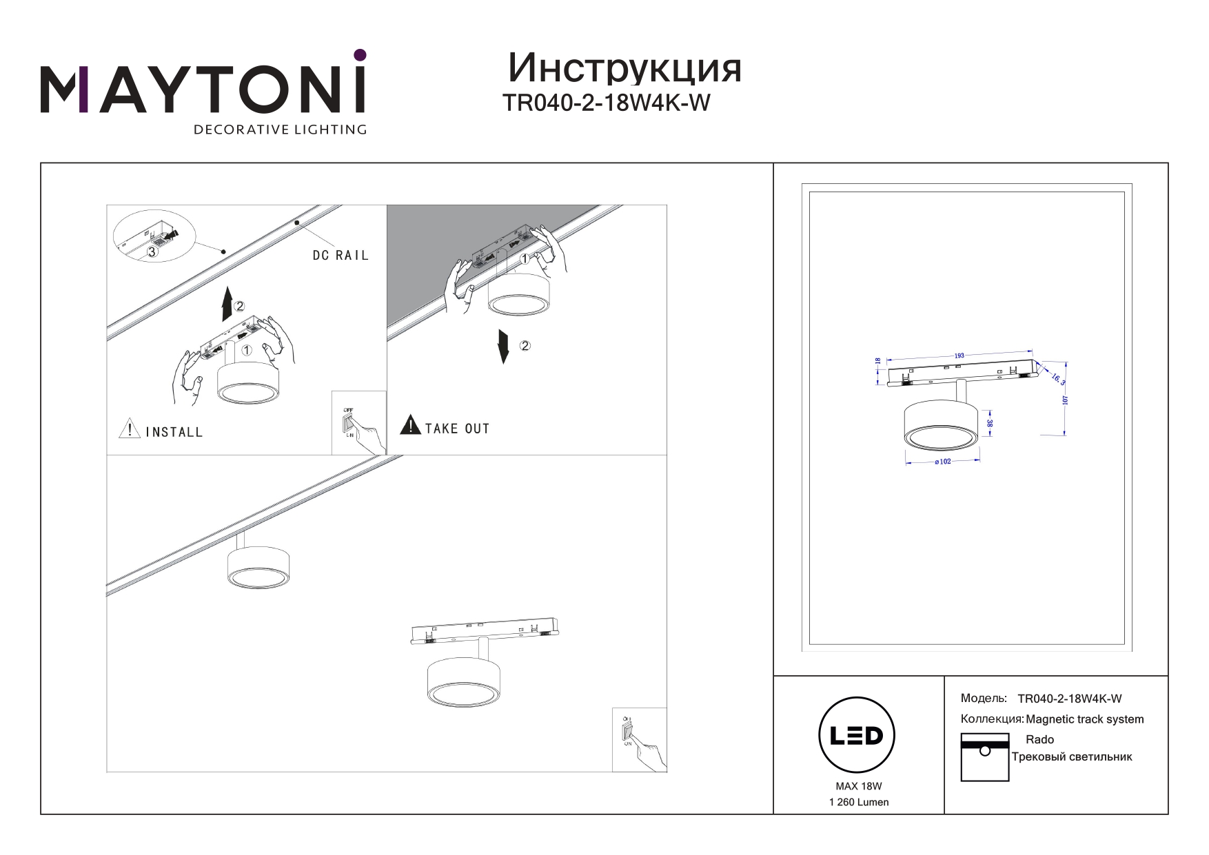 Все характеристики TR040-2-18W4K-W