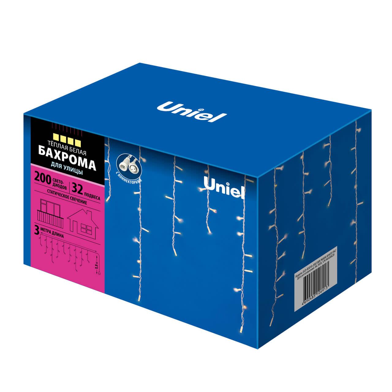 Уличная светодиодная гирлянда (UL-00003679) Uniel бахрома 220V теплый белый ULD-B3010-200/SWK Warm White IP67 в Череповце