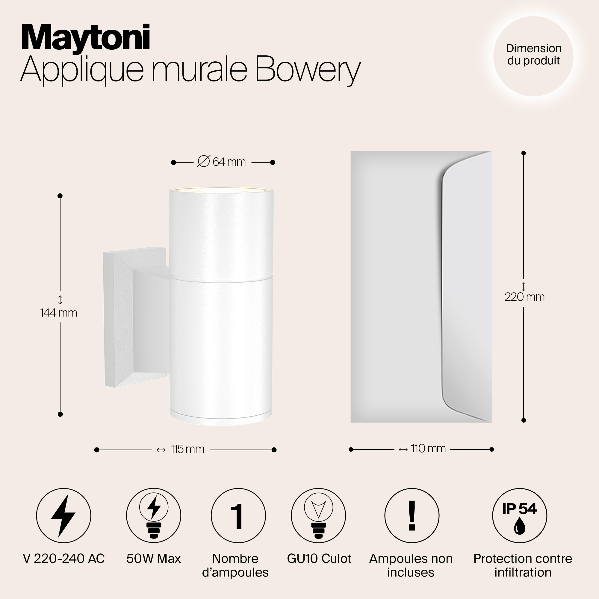 - Мощность лампы: 50 W