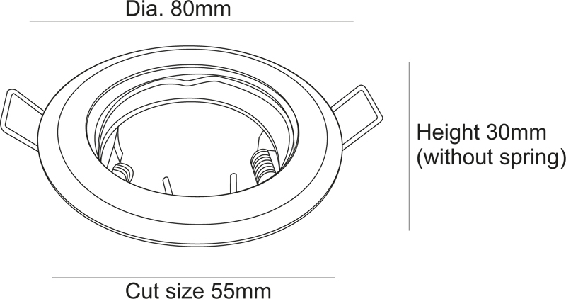 - Диаметр врезного отверстия: 55 мм (5.5 см)