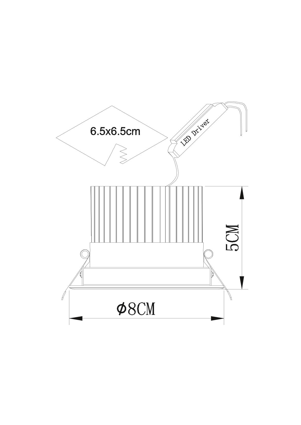 - Диаметр врезного отверстия: 65 мм (6.5 см)