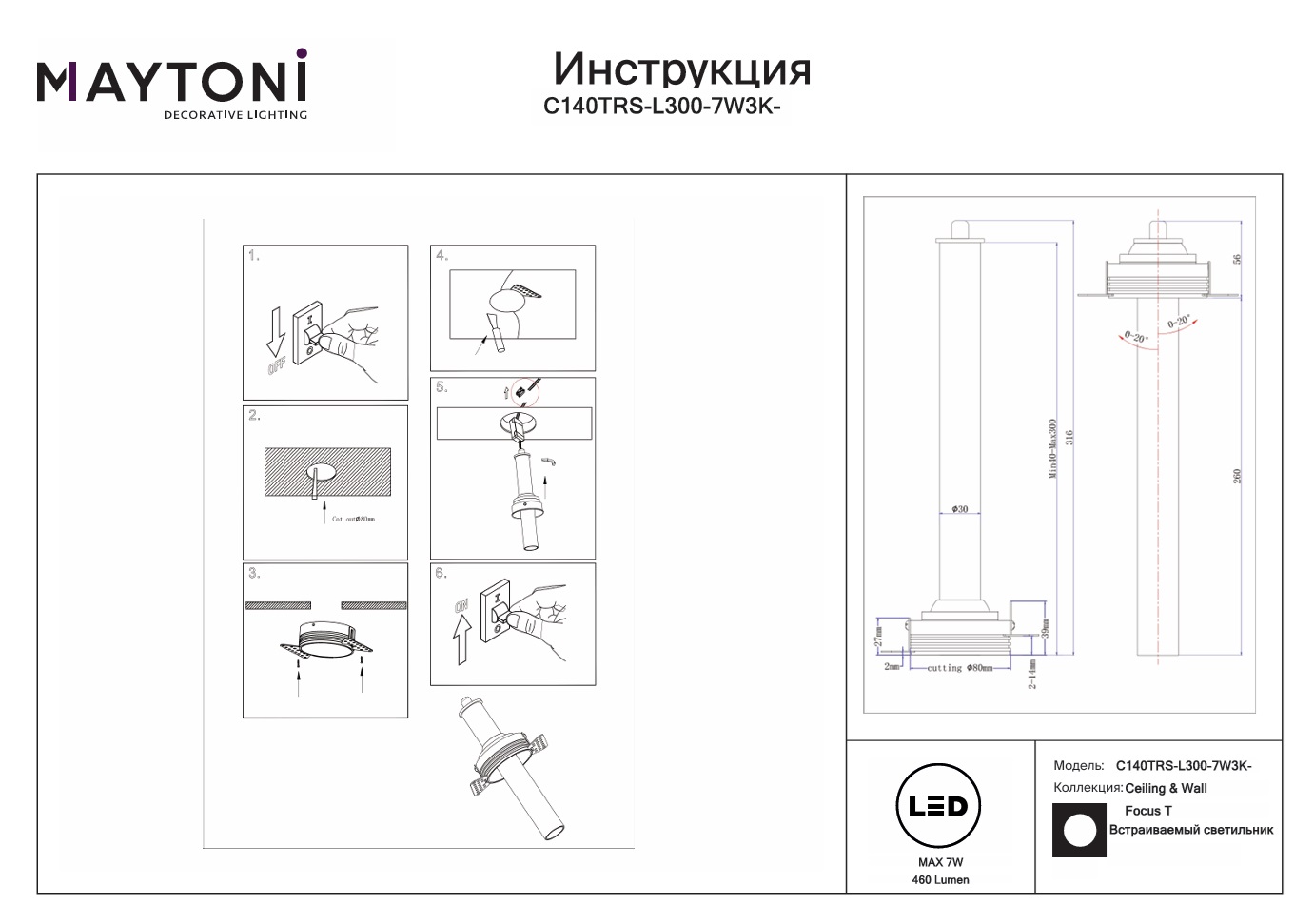 Данную модель C140TRS-L300-7W3K-BBS с быстрой доставкой спешите купить по цене 3 872 ₽ в магазине 220svet.ru
