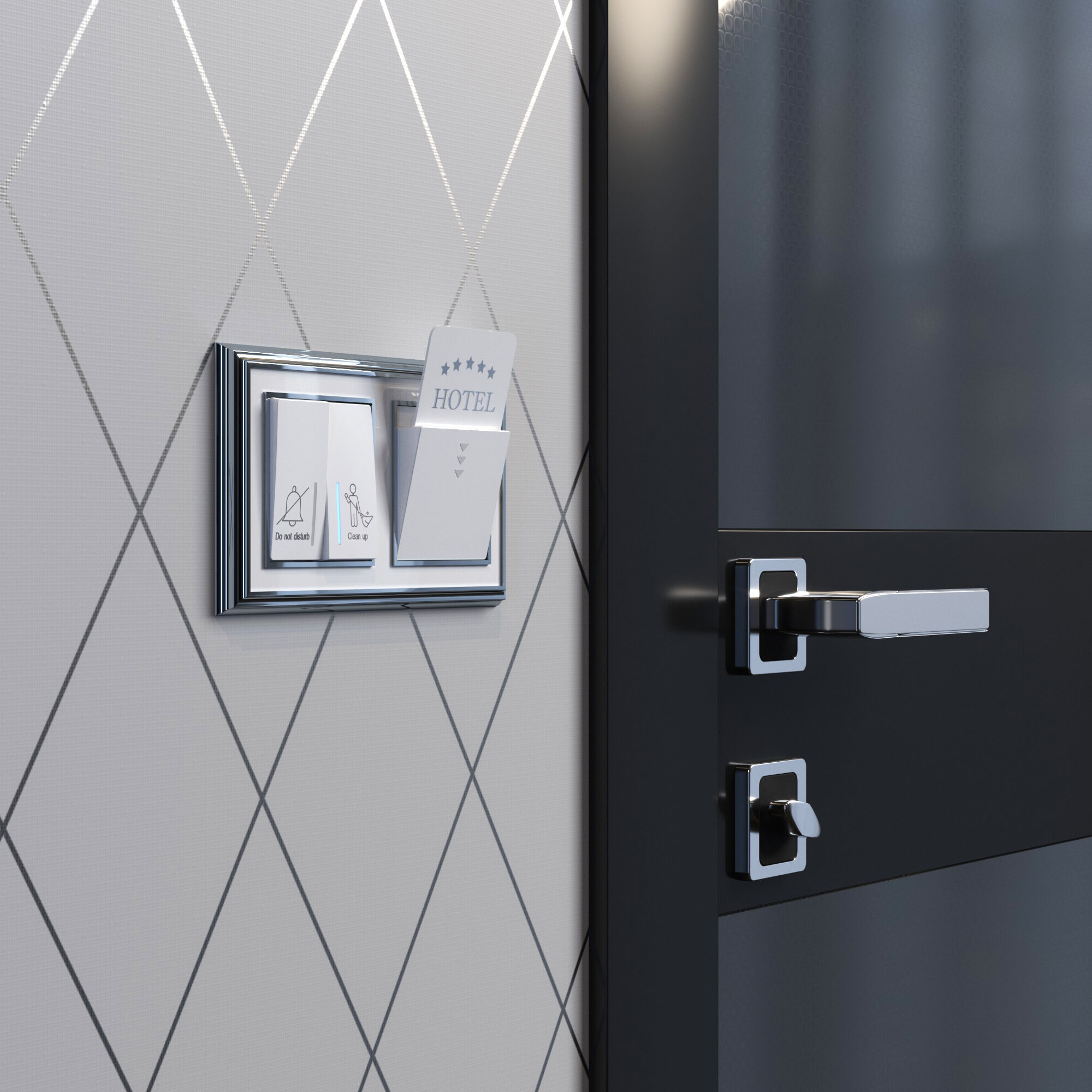 Кнопка вызова горничной передаёт сигнал персоналу на дверной звонок с индикатором, находящийся снаружи номера. Включение гостем режима «не беспокоить» также отображается на индикаторе — и отключает дверной звонок. Кроме того, механизм может использоваться в офисах и медицинских учреждениях.