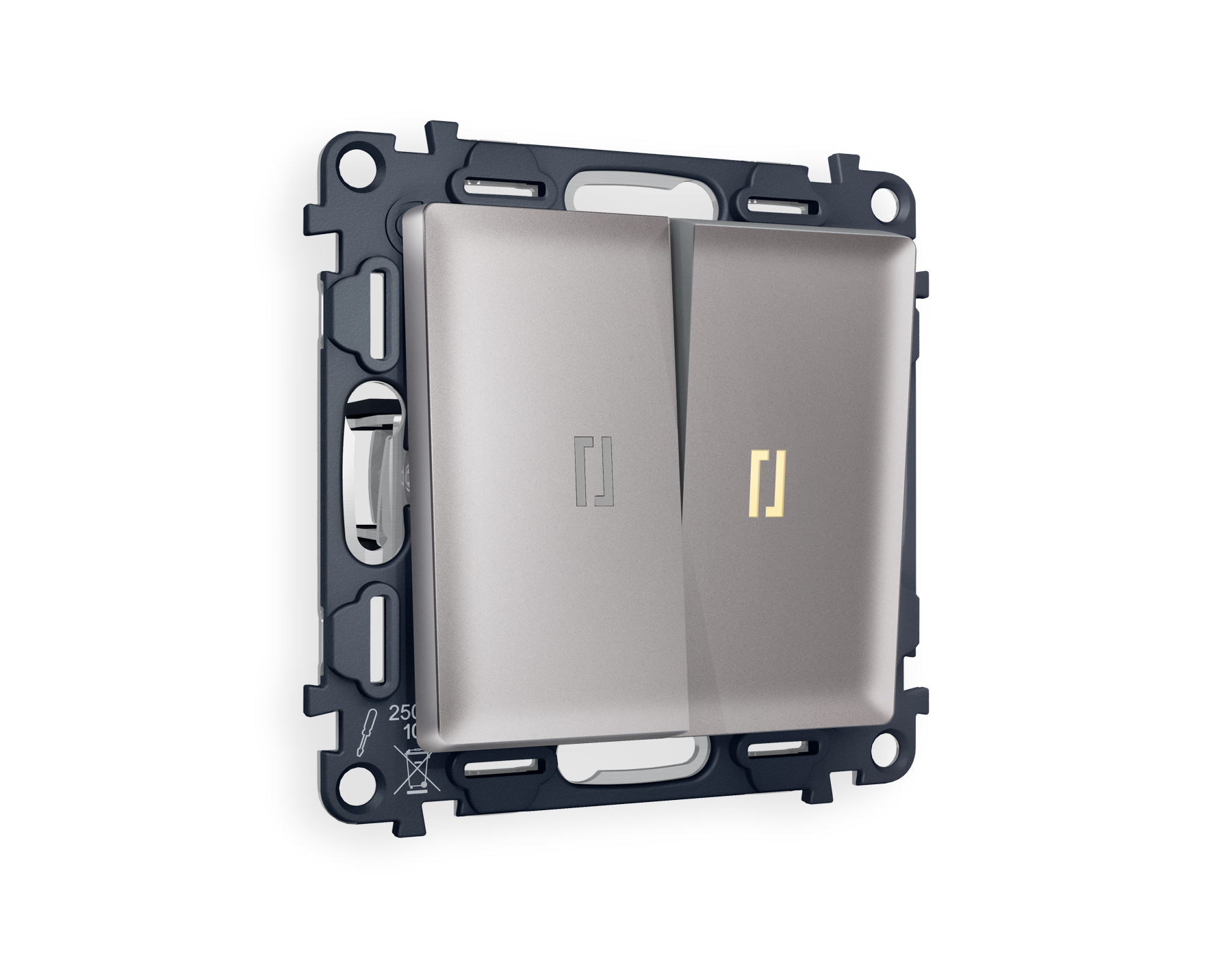 Многогранный ассортимент Ambrella Volt включает в себя механизмы, лицевые панели и рамки, а также комплекты, доступные в различных цветовых решениях. Продукция представлена в модульном исполнении, что позволяет гибко настраивать внешнийвид и функциональность. Вам будет легко заменить лицевую панель, рамку или механизм, найдя идеальное сочетание цветов.
