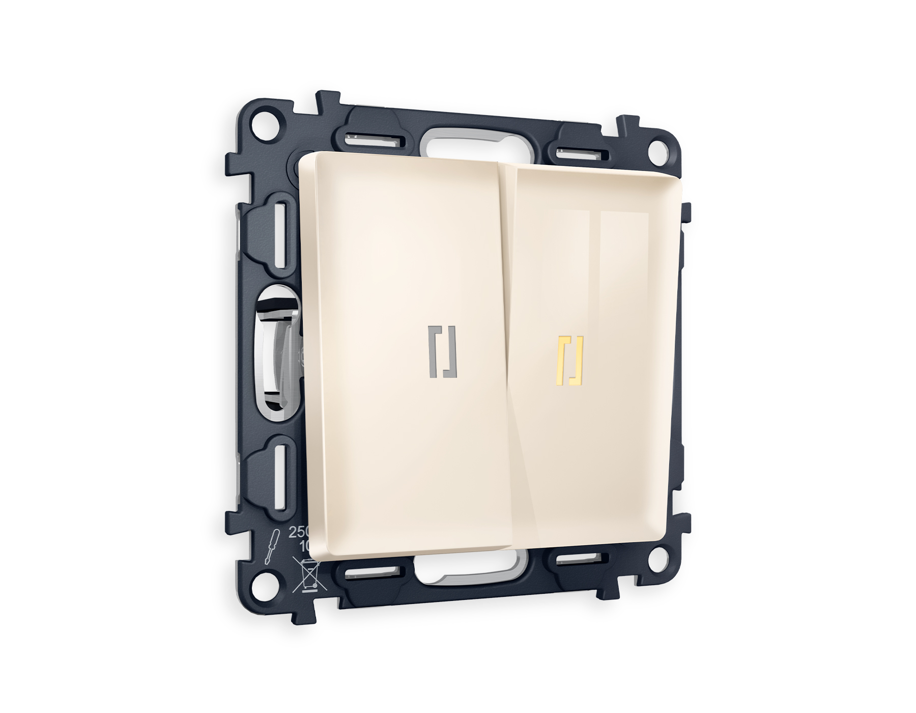 Многогранный ассортимент Ambrella Volt включает в себя механизмы, лицевые панели и рамки, а также комплекты, доступные в различных цветовых решениях. Продукция представлена в модульном исполнении, что позволяет гибко настраивать внешнийвид и функциональность. Вам будет легко заменить лицевую панель, рамку или механизм, найдя идеальное сочетание цветов.